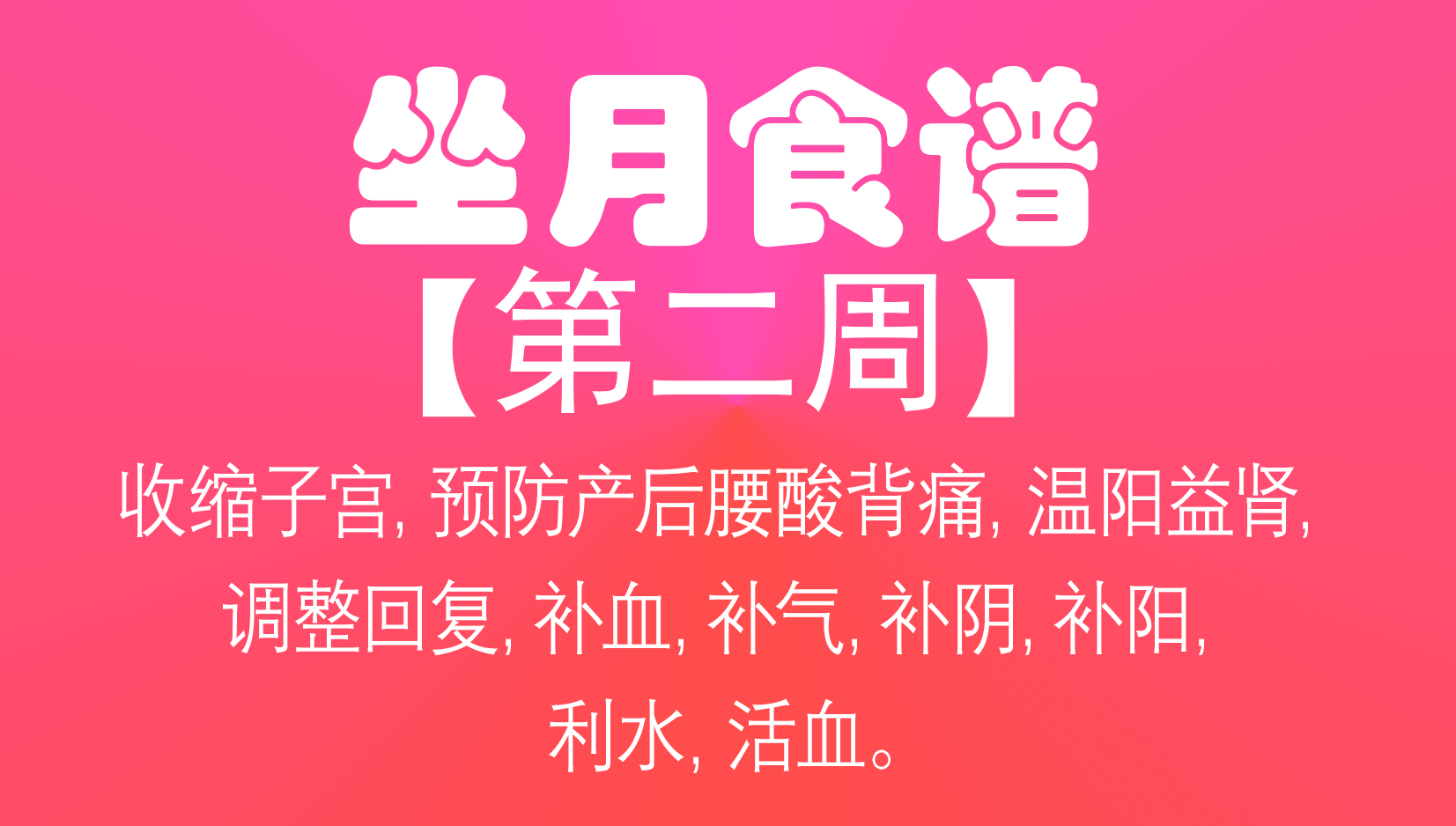 功效全面覆盖: 清除恶露、收缩子宫、温阳益肾、补气补血、滋阴壮阳、活血利水。从第一周的排毒净化,到第二周的强身健肾,再到第三周的滋养强壮,最后实现第四周的全面恢复与抗老。科学坐月子,吃出健康与美丽!