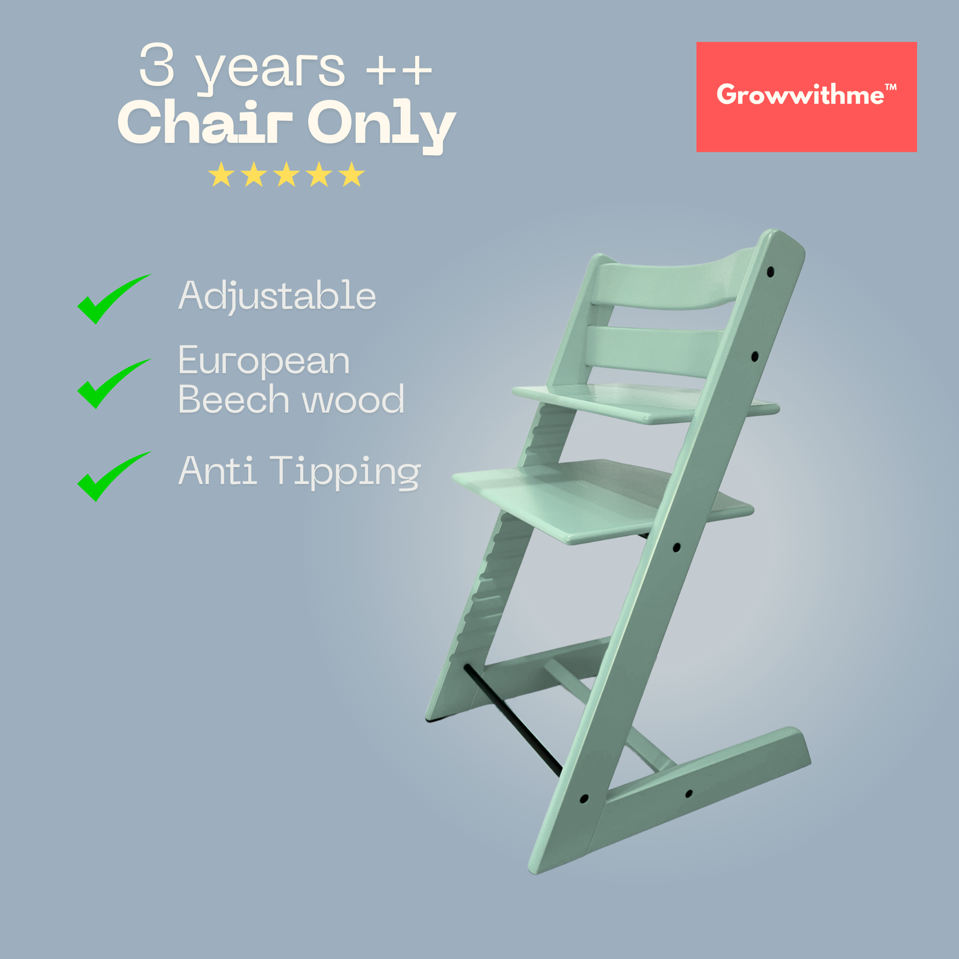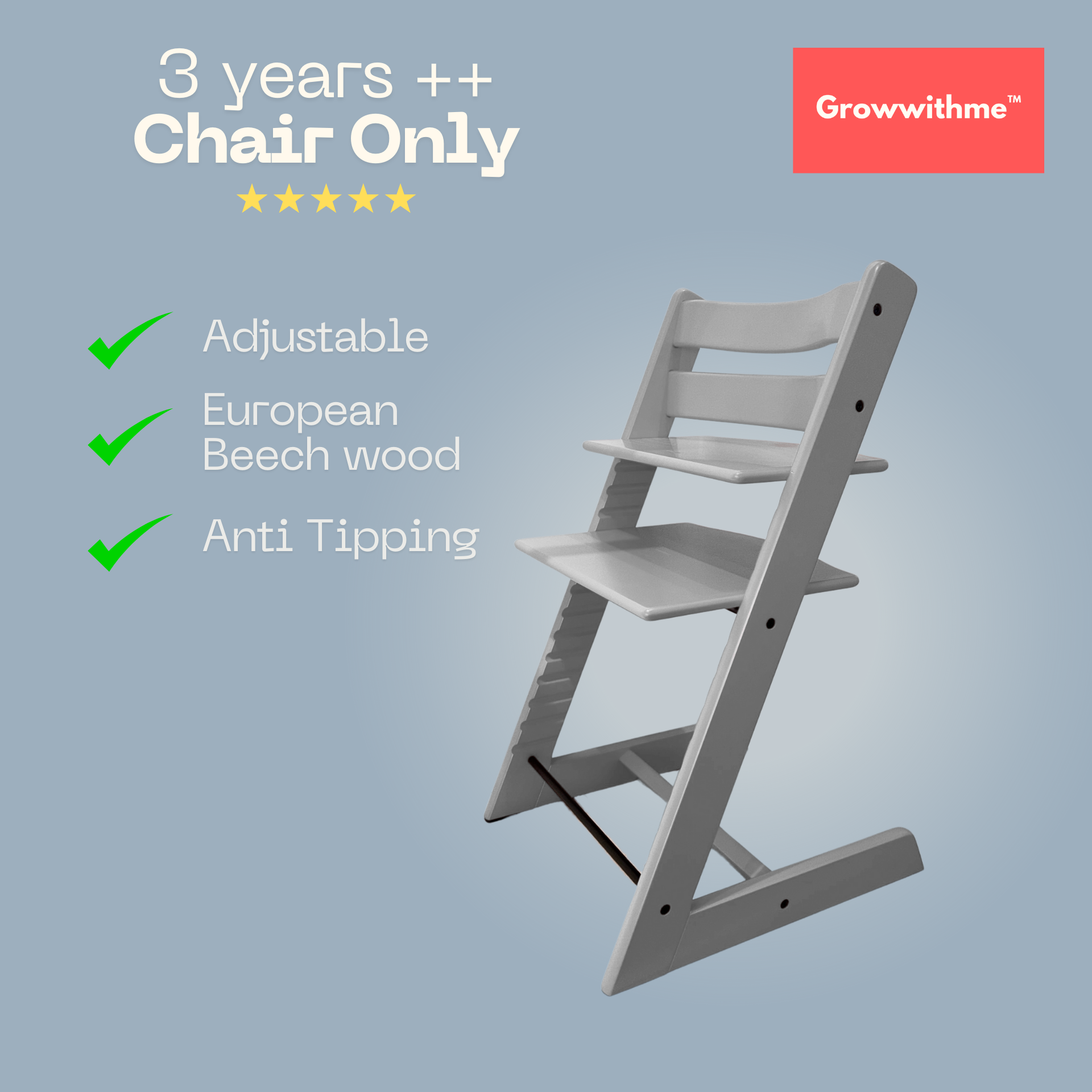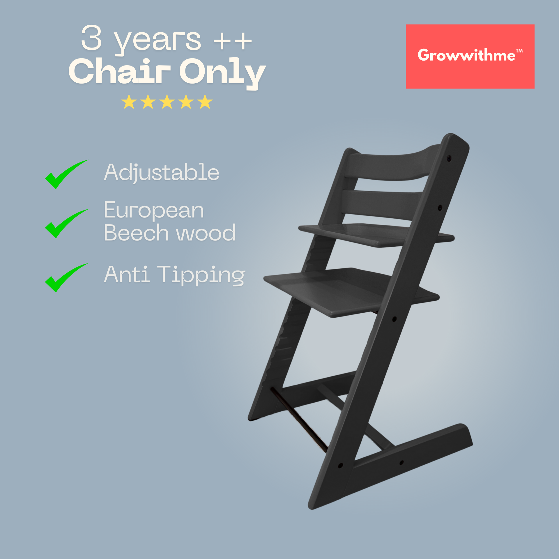 Growwithme™ High Chair grows with your child — from 6 months to beyond 10 years old.