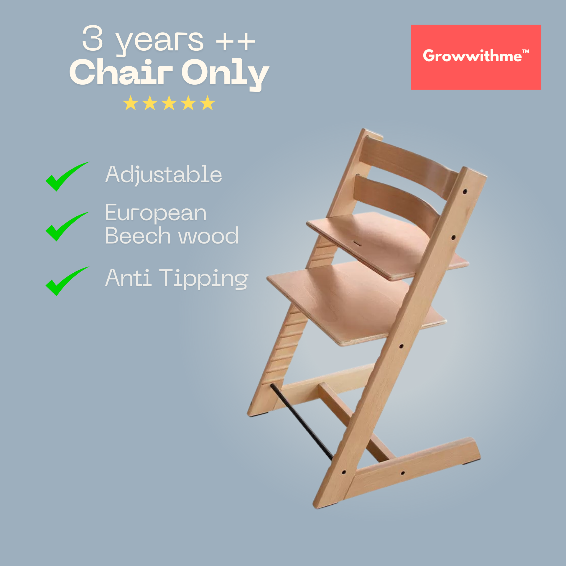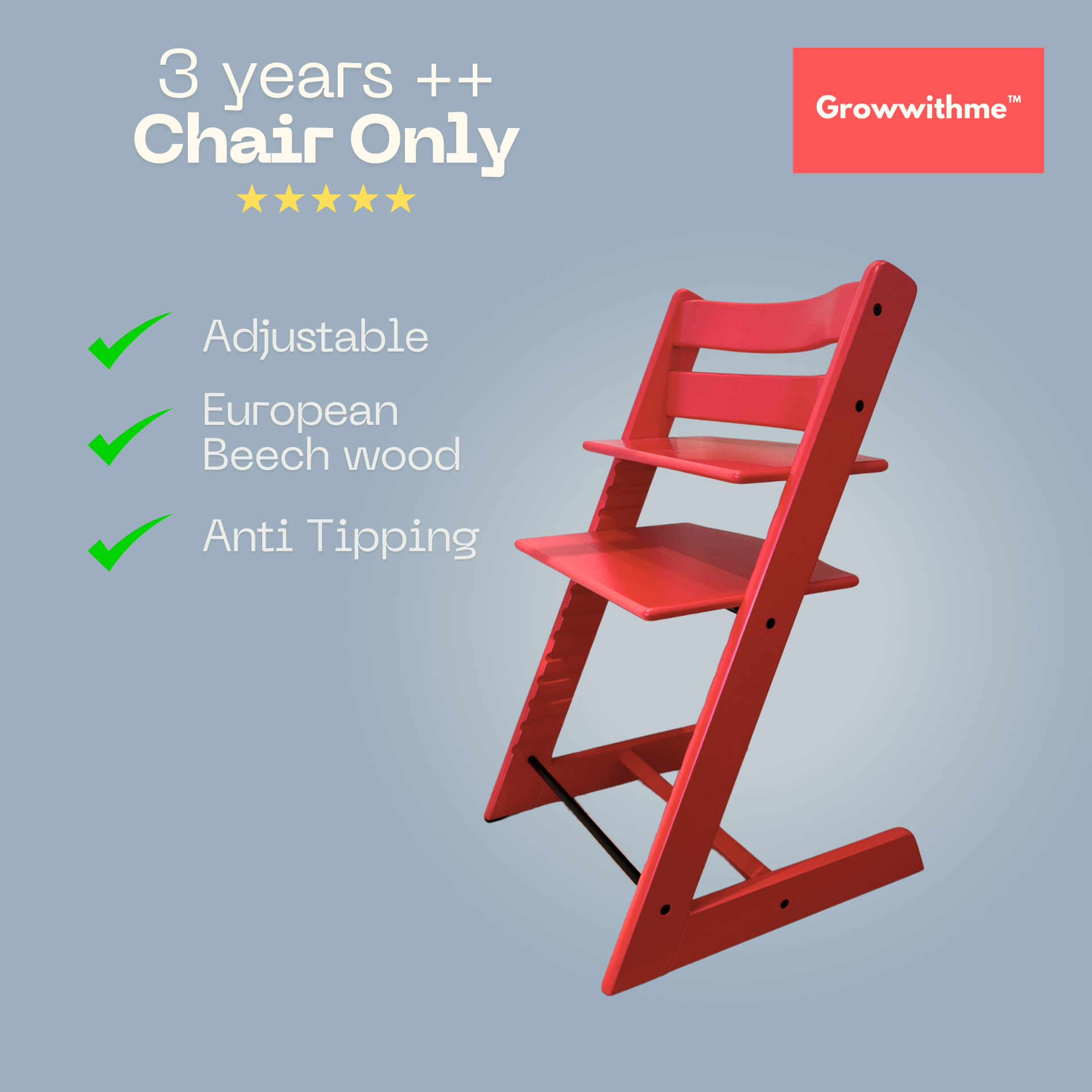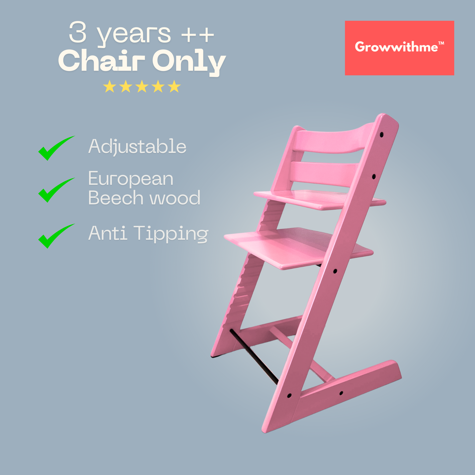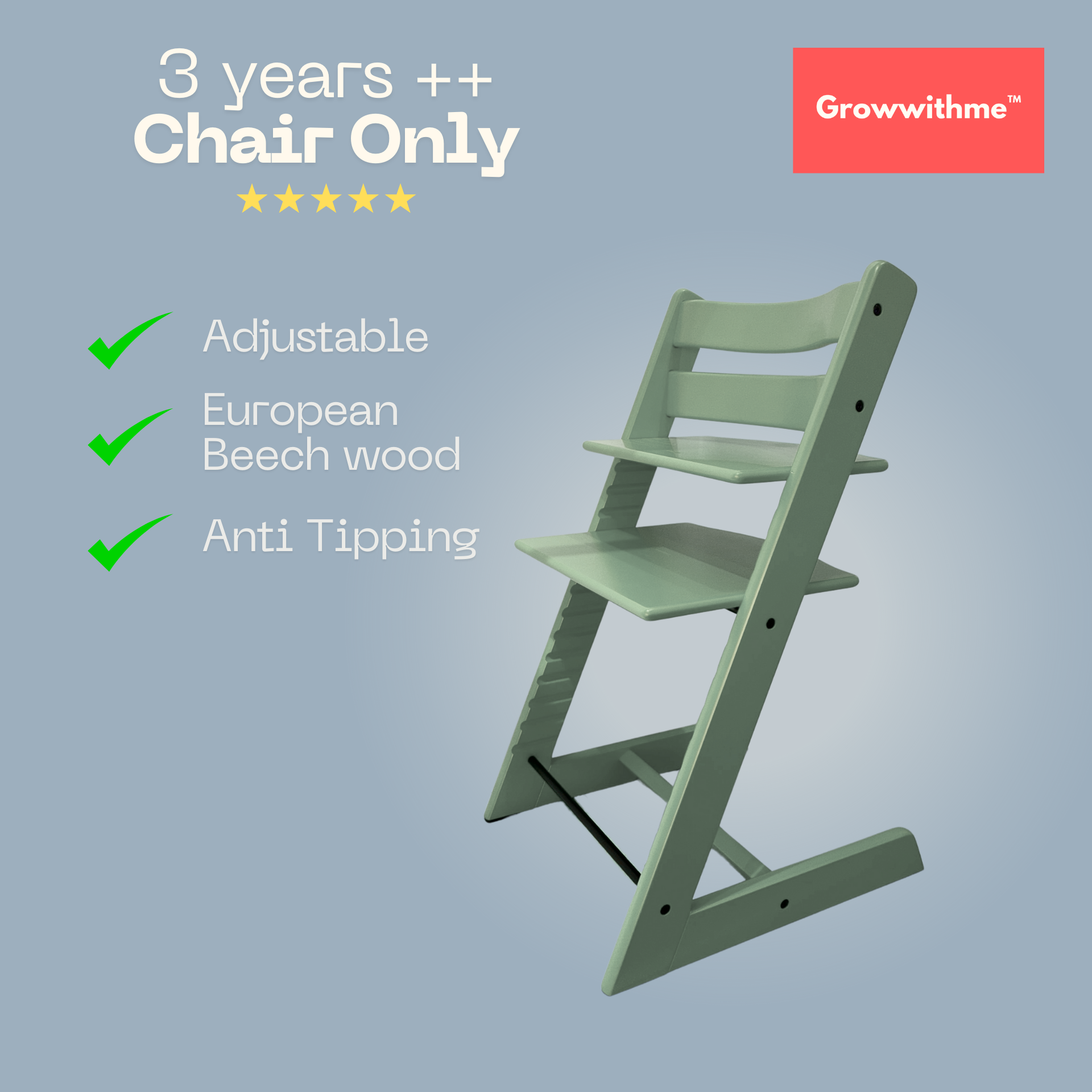 Growwithme™ High Chair grows with your child — from 6 months to beyond 10 years old.